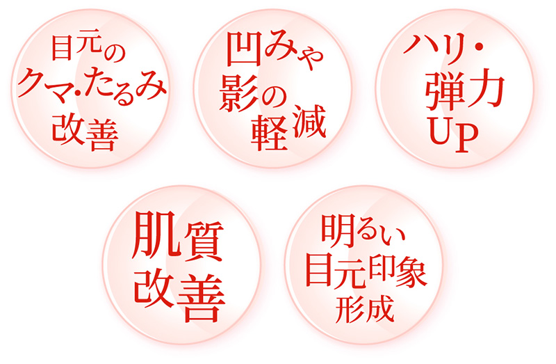 加齢によってたるんだ皮膚や凹みを内側から支え、目の下の影をやわらげながら 肌全体のハリ・ツヤ・トーンを改善。